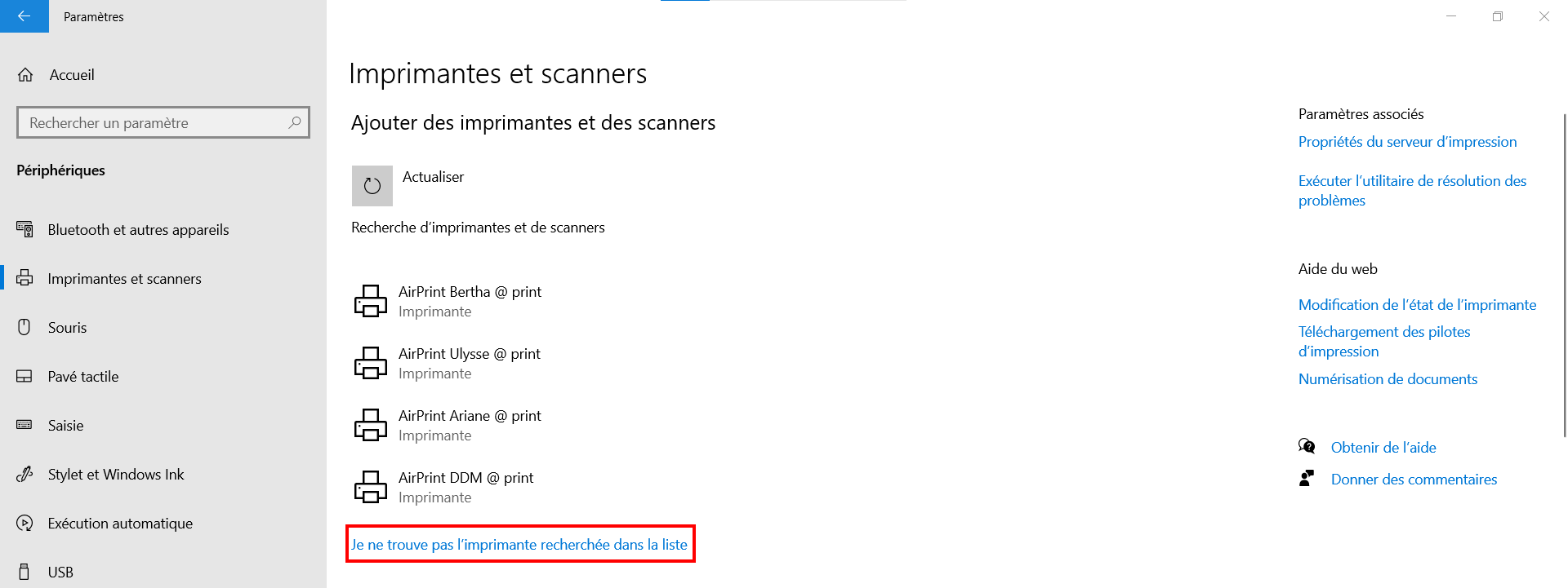 Attendez un peu puis cliquez sur le lien "Je ne trouve pas l'imprimante recherchée dans la liste"