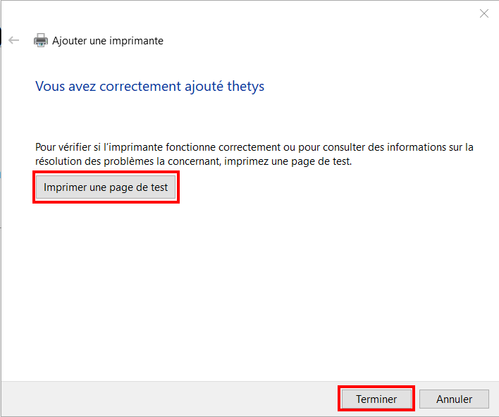 Vous pouvez maintenant testez votre imprimante en cliquant sur "Imprimer une page de test"